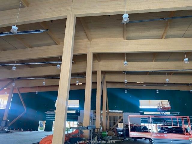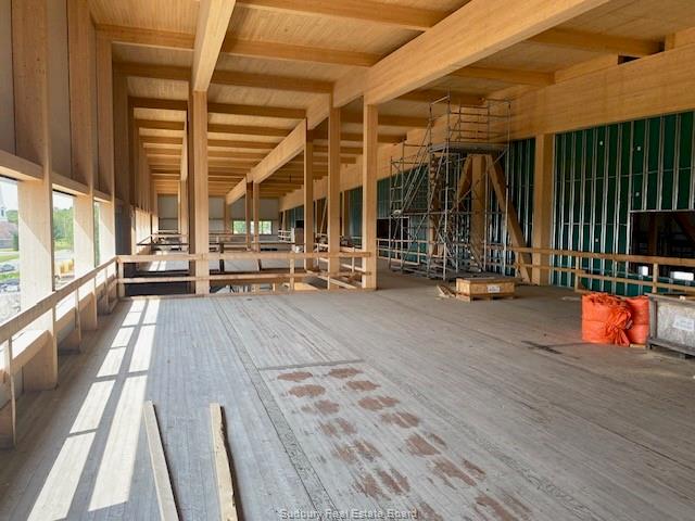new construction in central cambrian heights location. located minutes from main corridor of notre dame (traffic light), this building is roughly 49,000 square feet of combined office and industrial/warehouse space across two floors. the layout if flexible in that the building is designed for four separate tenants, but can be leased out any combination of the four units. there will be 81 paved parking spaces on the site. the back (north) side of the building features twelve 8' x 10' loading dock doors and four 16' x 16' grade-level overhead doors. if rented to four separate tenants, each unit will be assigned three of the loading docks and one overhead door. clearance height varies depending on the unit (middle units have higher ceilings due to the roof slope) and positioning, given there are are 4' deep beams running east-west every 20'. in end units, clearance height directly below these beams is between 24' and 27', while in between beams it is between 27' and 29'. middle units have 27-29; clearance directly below the beams and 32-34' clearance in between the beams. the building structure is mass timber - specifically glued-laminated timber (glulam) columns and beams and cross-laminated timber (clt) floor and roof docking. the exterior walls consists of insulated metal panels amounted directly to the mass timber frame. they contain 8' of continuous rigid insulation, resulting in a true continuous r-32 rating that far surpasses current energy efficiency requirements. above the wood roof deck is 7 1/2" of continuous insulation capped with a standing metal roof , which provides a continuous r-40 rating. the remainder of the south face of the building will be finished with stone and glass. filtering period is expected in the early fall. unit size starts at 11,926 sf. cam $5.00. | |
