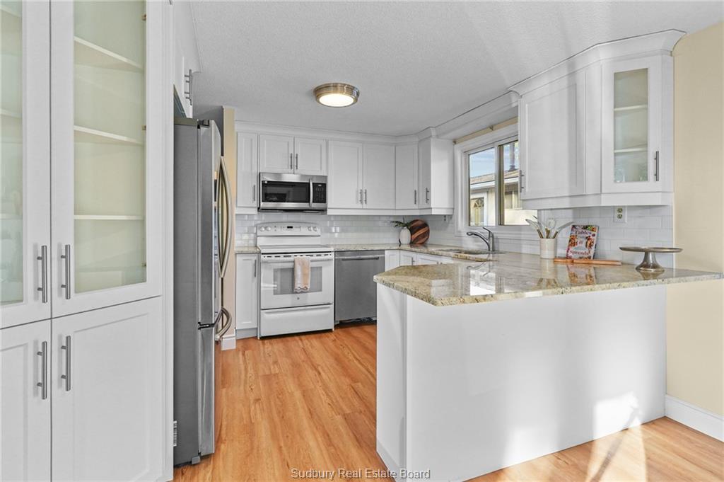welcome to this beautifully updated 3-bedroom, 2 bath home with carport located in a quiet, highly desirable neighbourhood. beautifully updated kitchen, featuring granite counter tops, and modern appliances. lower level completed with a family room, wood stove, bathroom, and great storage. this home offers a functional layout with spacious living areas and stylish finishes throughout.