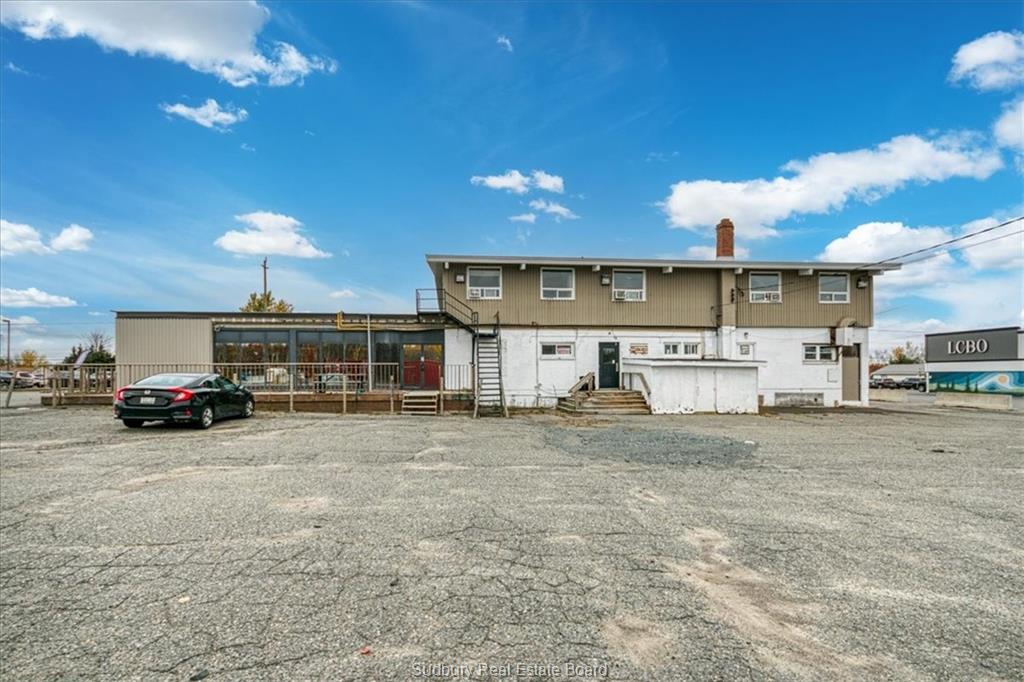 great opportunity in the thriving garson area. previously known as the falcon hotel, this property is currently leased to a movie production company and has been for 5 years. with over 5500 square feet of space on the main level, the main floor can be demolished for any commercial use. at present there is a 1000 square foot restaurant with a full kitchen, approximately 4000 square feet currently being used for wardrobe production and storage. there is a basement under half of the building that has been used for storage and mechanicals. there is a dock at the back for loading. the building sits on a paved lot that can easily accommodate 50 or more cars front, back and on the sides. terrific location of a major chain restaurant or conversation to professional offices. traffic count on falconbridge hwy is showing as 24,000 cars a day. ample opportunities for fascia and pylon signage. | |