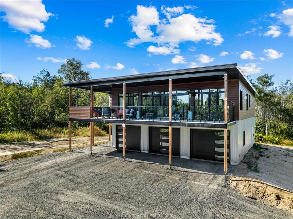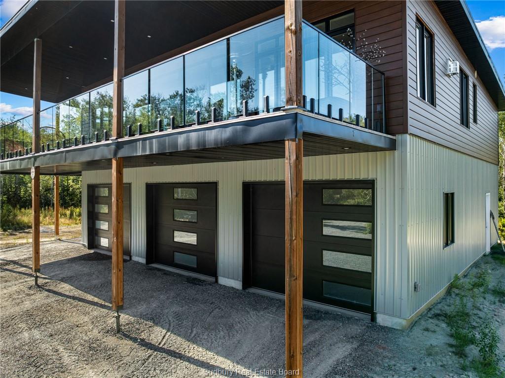 welcome to 1836 yorkshire dr. where modern design meets the serenity of country living. built in 2023, this executive bungaloft offers over 2,200 sq. ft. of refined living space, set on an extraordinary 70 acres of private landscape. a gated entrance with wrought iron doors leads you down a private road, setting the tone for the exclusivity and tranquility. designed for both everyday comfort and upscale entertaining, this slab-on-grade home features in-floor heating, central air, and the added peace of mind of a generac backup generator. with parking for 10+ vehicles, a triple car garage, and separate entrance to a flexible 3rd bedroom/office or den, the layout is as functional as it is impressive. inside, the open-concept top floor level is flooded with natural light from expansive windows, highlighting sleek ceramic tile floors, elegant french doors, and ambient lighting throughout. soaring 9 foot ceilings enhance the sense of space, while the chef-inspired kitchen anchors the home with stainless steel appliances, a statement granite island, custom white cabinetry, and a stylish tiled backsplash. the dining area flows effortlessly onto a stunning 50 x 10 ft. wrap around deck, perfect for entertaining, outdoor dining, or creating your dream outdoor kitchen. the primary suite is a true retreat, featuring a spa-like ensuite, complemented by 2 additional bedrooms (one on top floor, one on main) and 1.5 additional bathrooms. surrounded by nature, this property offers unmatched privacy, ideal for watching wildlife, hosting gatherings or simply enjoying peaceful moments year-round. minutes from city amenities, this home delivers a blend of luxury, space, and convenience. a modern countryside escape with the feel of a penthouse, this is a lifestyle opportunity not to be missed. |