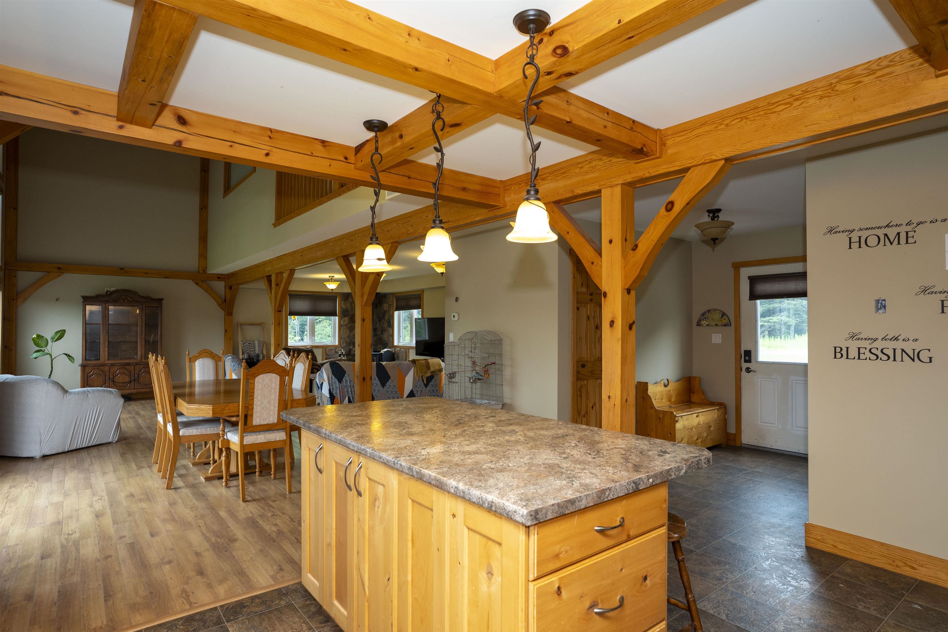 new listing! in kakabeka falls/conmee! custom built by seargeant picard fine homes in 2011/2012. on this (just shy of) 140 acre farm property sits this 13 year old, 4 (2+2) bedroom, 3 bathroom, timber frame interior home with open concept kitchen, dining room, and living room. with both 18 foot and 20 foot vaulted ceilings. patio doors off this to the deck. the 2nd level overlooks the main level. there are 2 bedrooms and a full 4 piece bathroom upstairs, a 2 piece bathroom on the main, and 2 bedrooms and a half bathroom in the lower level that is fully finished with laundry/utility room and storage rooms. the property also has a 32 x 32 barn. electric fence for horses with approximately 4 acres cleared with 4 km of horse trails or for atvs and snow mobiles/sleds. there's also private lakes behind the property that are accessible through the property for fishing, not to mention all of the trails that are accessible close because of the kakabeka trail system. the back acreage has never been treated so there's lots of mature trees on the property. also, all the animal pens on the yard as it was a fully functioning farm. | |